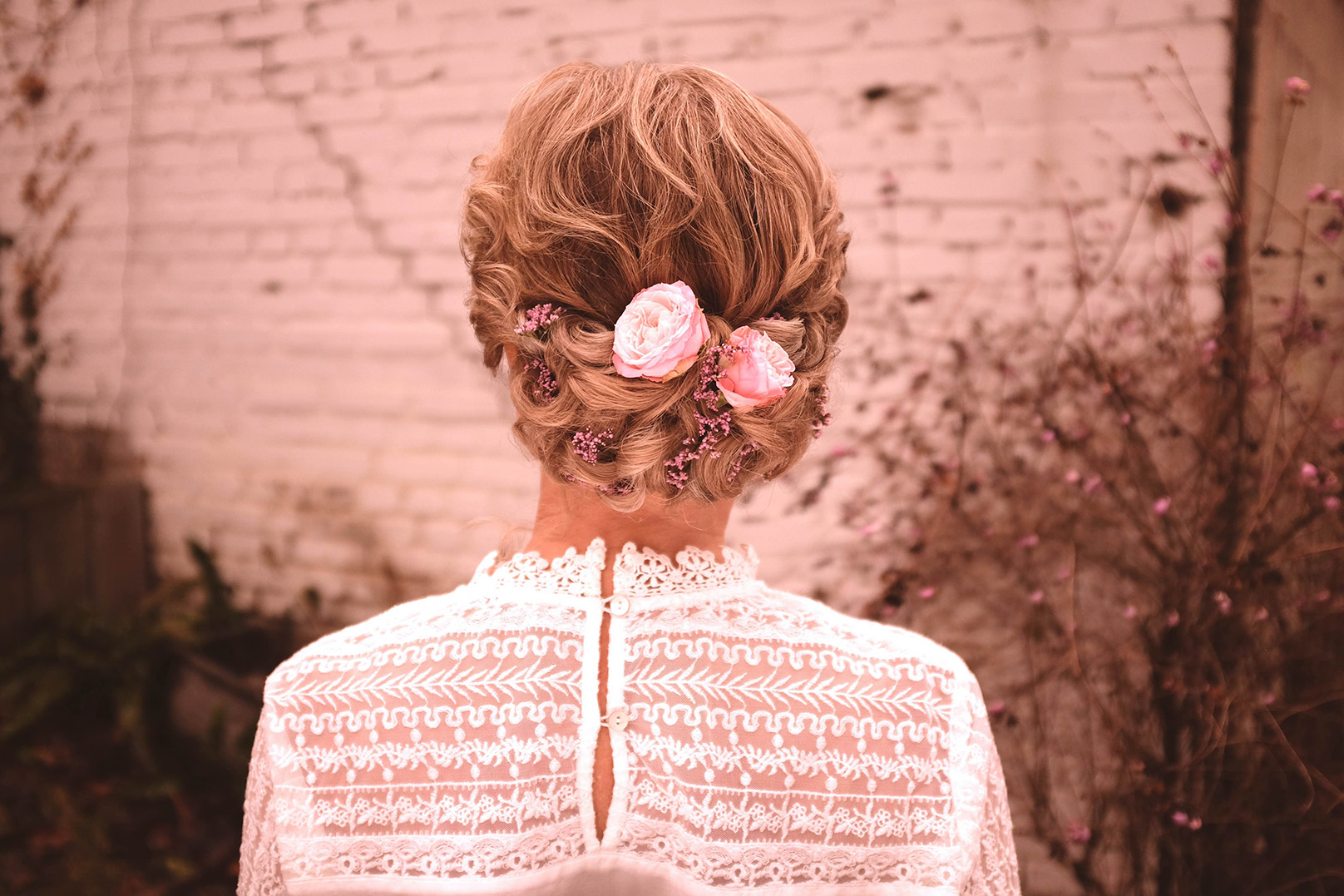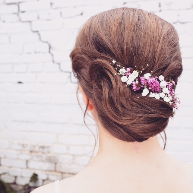 Hochzeitsfrisur, Hochgesteckfrisur mit vintage Blumen