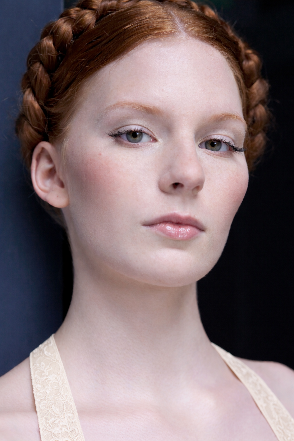 Hochzeitsfrisur, geflochtener Haarkranz mit Make-up