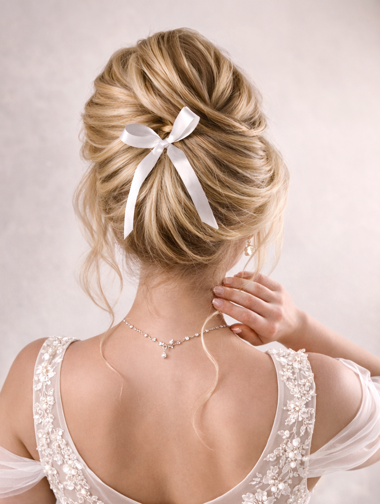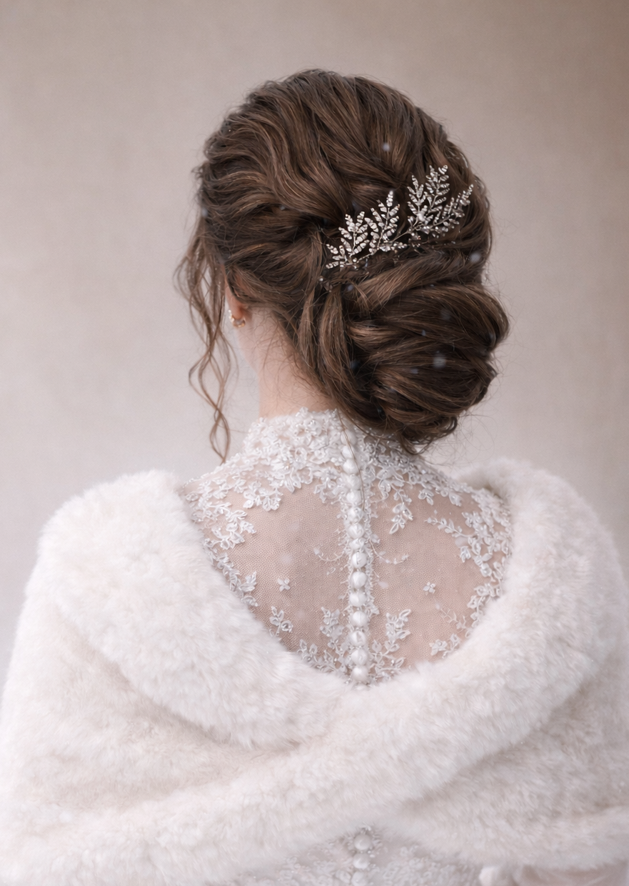 winterliche Hochzeitsfrisur mit Nackenknoten